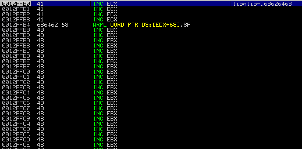 ret = "\x63\x64\x62\x68" # ASCII PPR