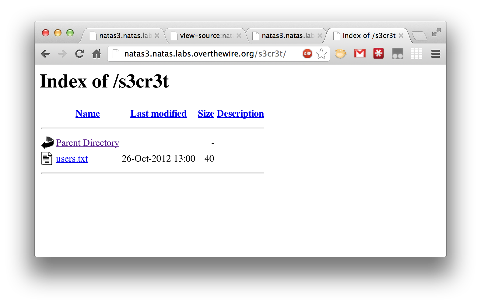 Continuing on with Level 3 of OverTheWire’s Natas wargame, I found the first page, like previous levels, saying that there was nothing on the page.