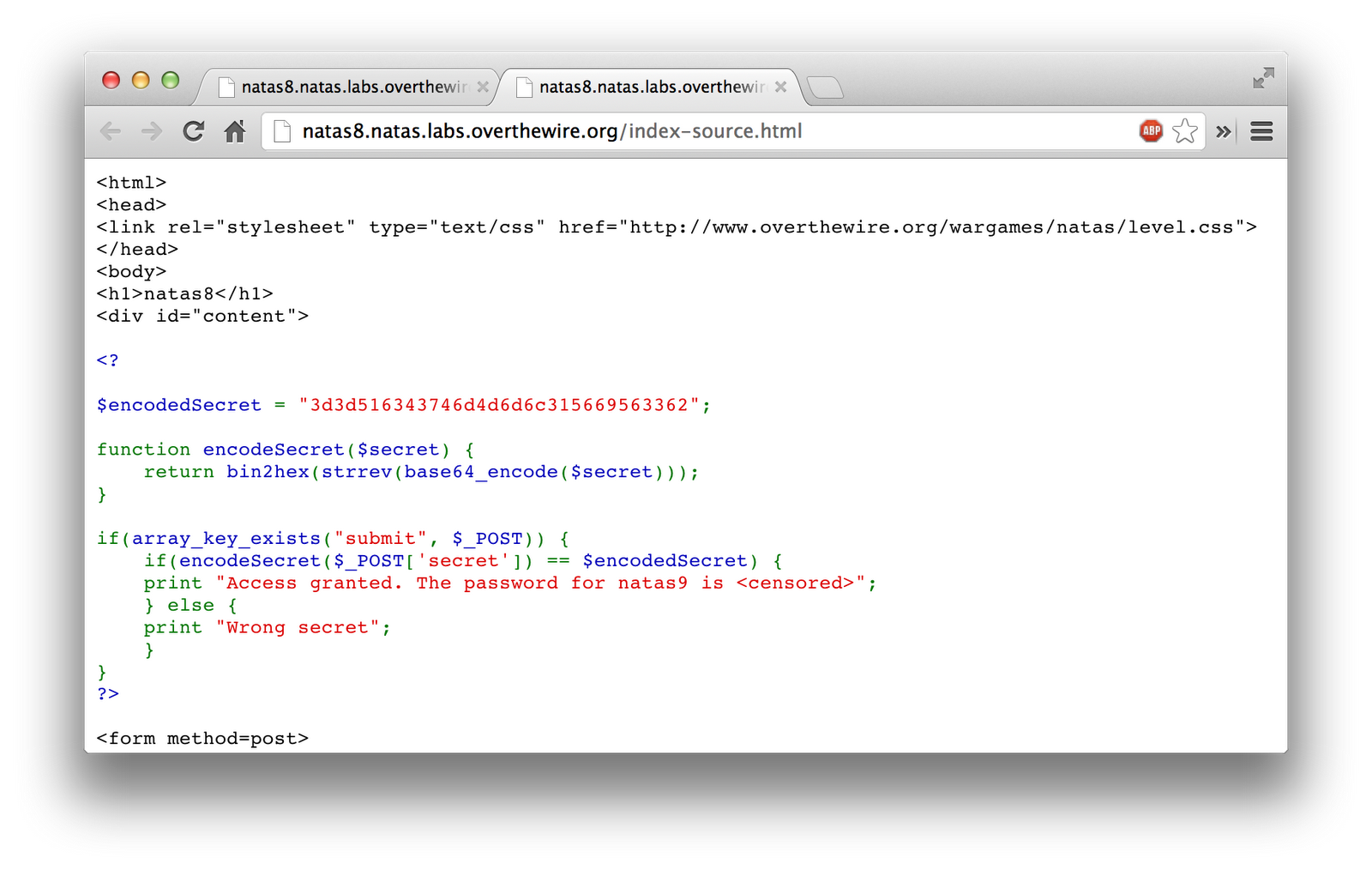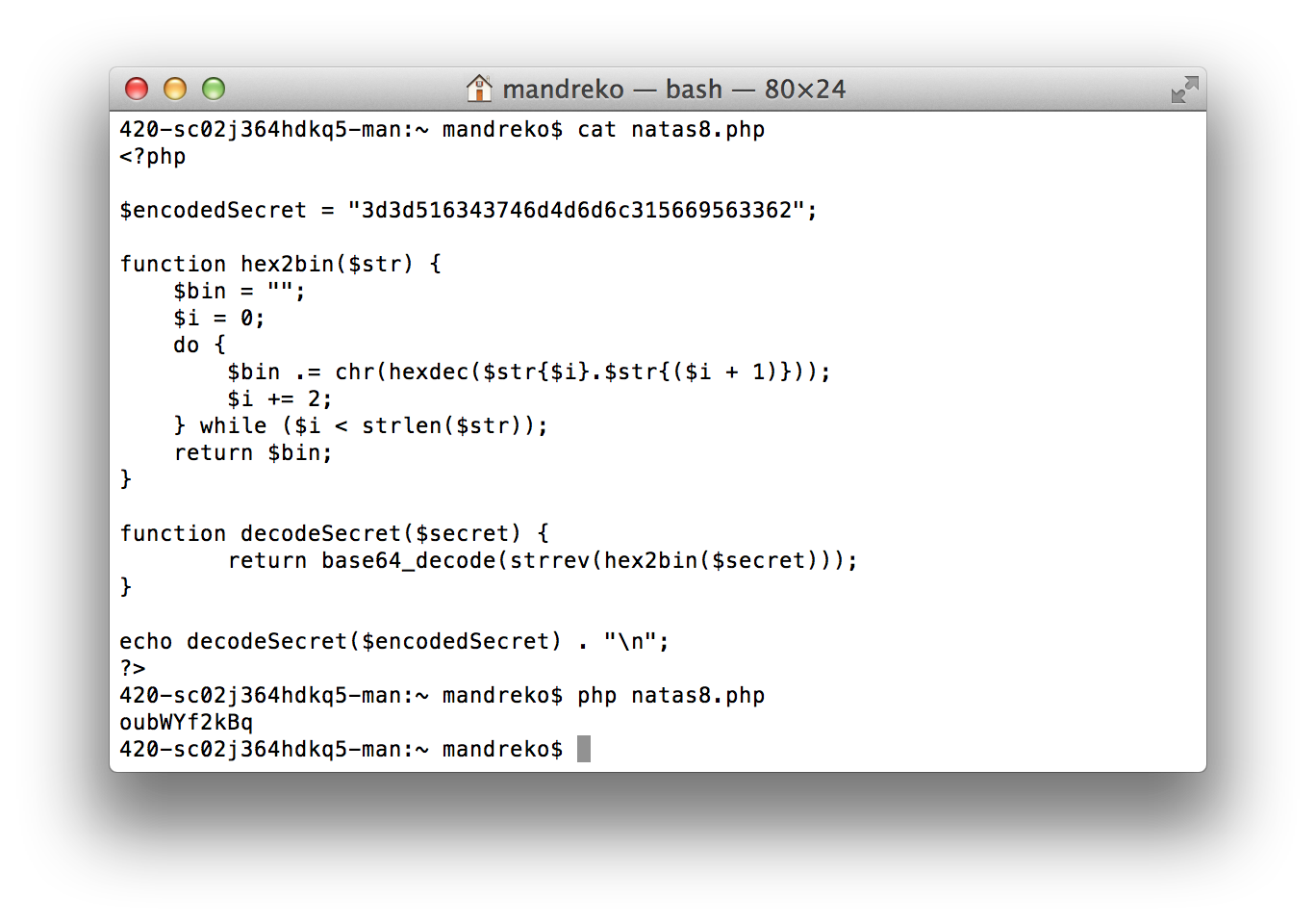 Level 8 of the OverTheWires Natas wargame was pretty simple, as a developer, but could prove more difficult if you don’t have similar background.