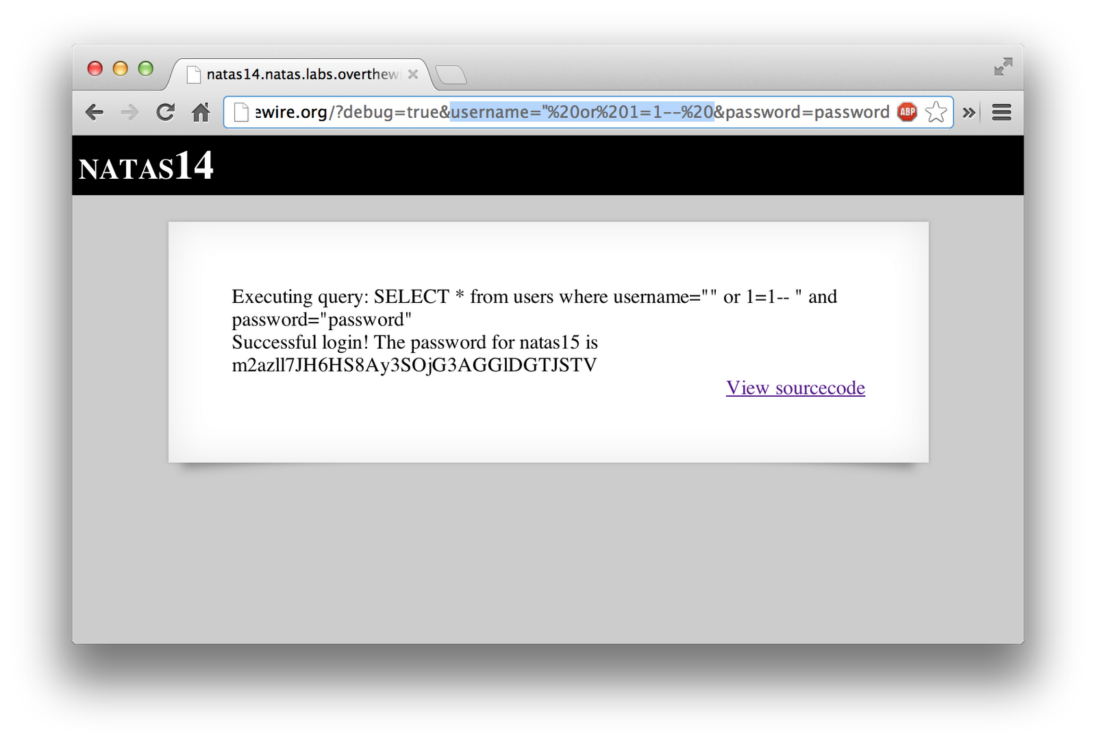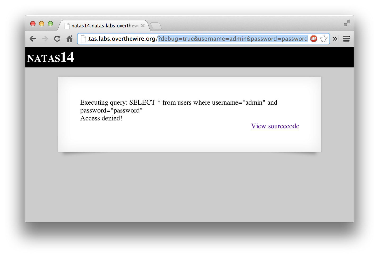The next level of the OverTheWire Natas wargame is Level 14, which introduces SQL Injection, a very popular subject as of late.