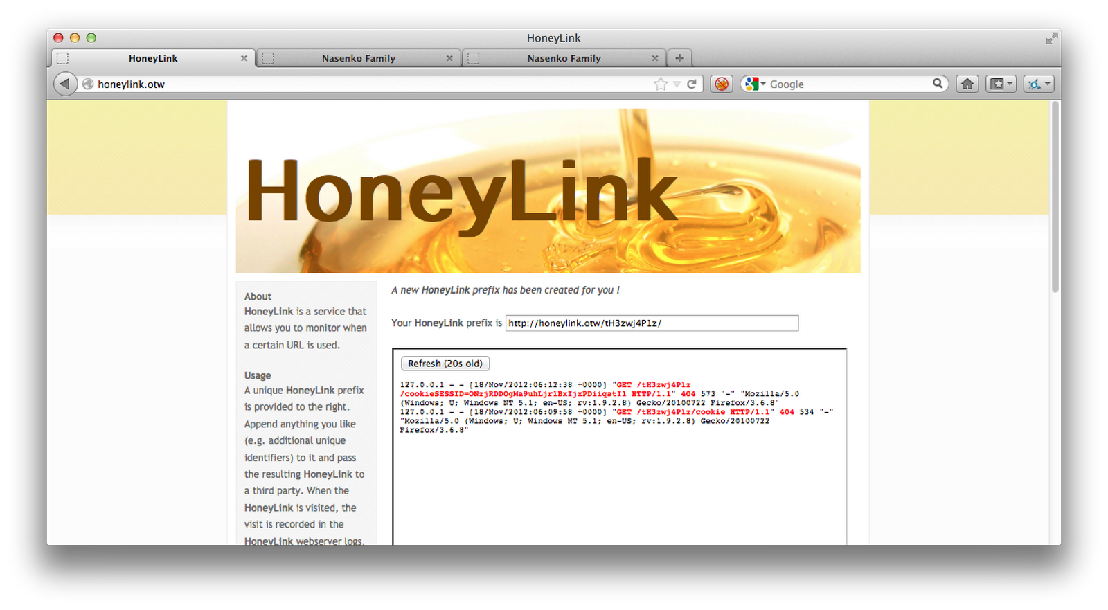 - The HoneyLink site is, so far, just a convenience for the wargame, so you don’t have to setup your own HTTP server. It gives you a prefix URL, that you can prepend anything you want to the end. It will then show you the responses as they come in.