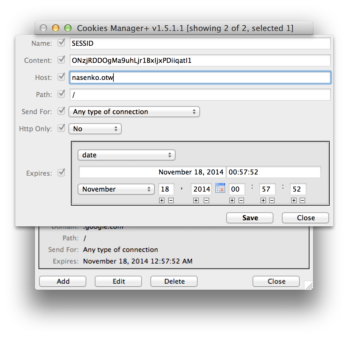 I submitted the URL to the Bookmark Service, and it gladly accepted it. I then switched to the HoneyLink page, and clicked the “Refresh” button, and saw that my click had indeed been registered. And lucky for me, it had the cookie listed: