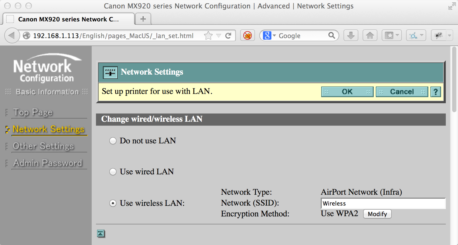 I recently bought a new printer at home, so my wife could print coupons without manually attaching to my office printer each time (Thanks coupons.com and all the other shady sites that require spyware-like software to print coupons, and often don’t support network printers). I ended up picking up a Canon MX922. It works awesome for her, and is connected over WiFi, so any device in the house can print to it. This got me thinking though, about how secure it was.