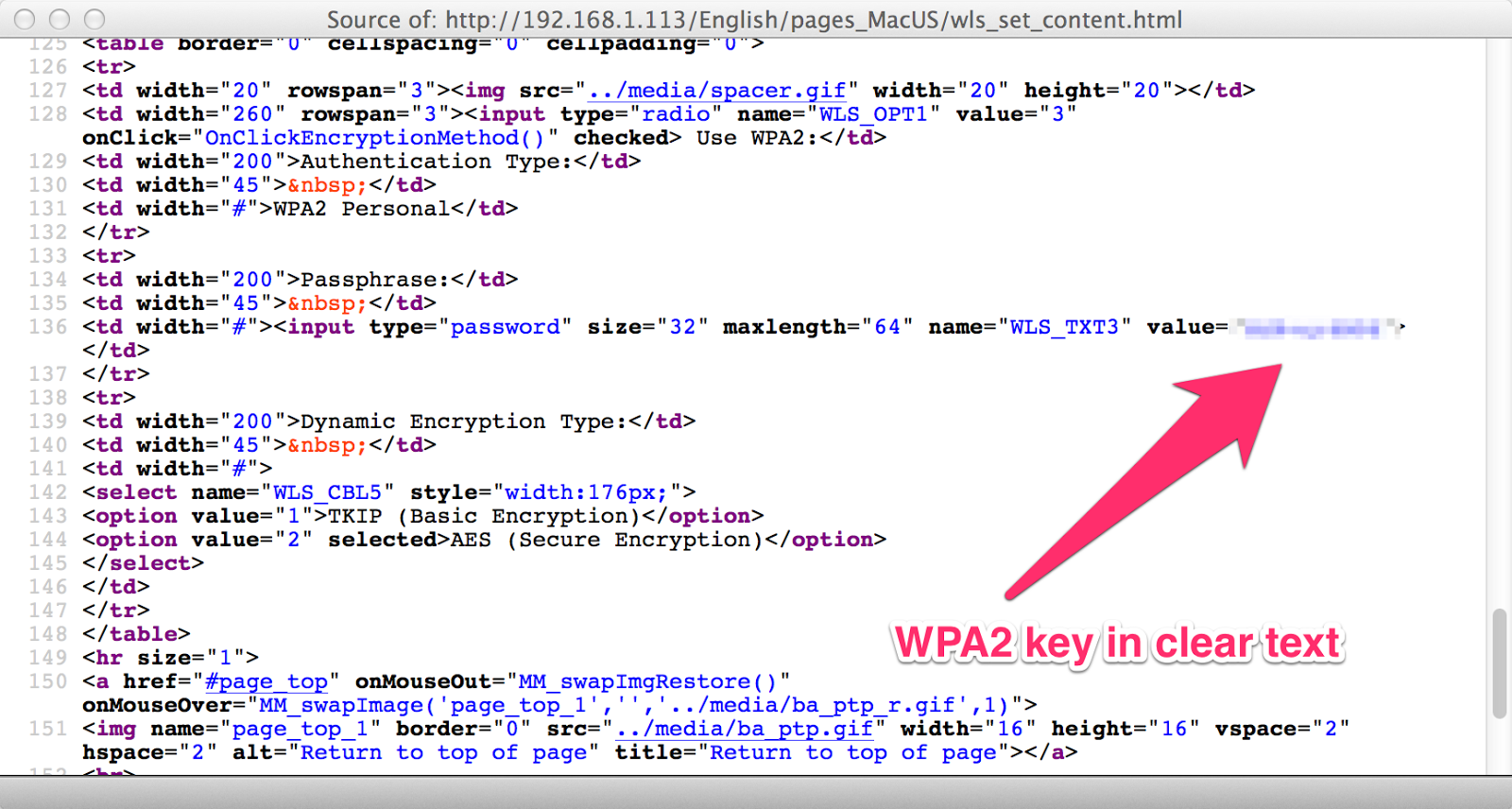 Assuming that there was a junk value in there, I viewed the source. Unfortunately, what I found was that the page did indeed have my printer’s WPA2 password right there.