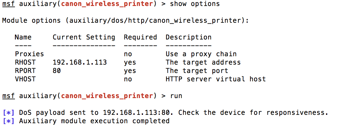 I understand, these vulnerabilites aren’t super high priority. They’re no ms08-067. But I would still think a vendor would want to fix them. When searching ShodanHQ, I found a bunch of printers from UCLA. I can only imagine the chaos when it becomes finals-week, and all the printers on campus stop working randomly. That’d be bad PR for Canon. Who knows what else is out there. I’d personally be interested in dumping the firmware of the printer, and seeing if there’s a way to get remote code execution out of a crash. I’ll chalk that up to my TODO list.