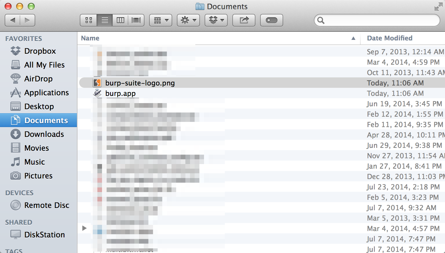Close out of the info screen and the Preview app, and you should see the new icon reflected in Finder. From there, you can drag the “burp.app” file into your Mac OS X Dock, and launch the newest version of Burp without having to remember the command arguments, or opening a shell and pasting in commands.