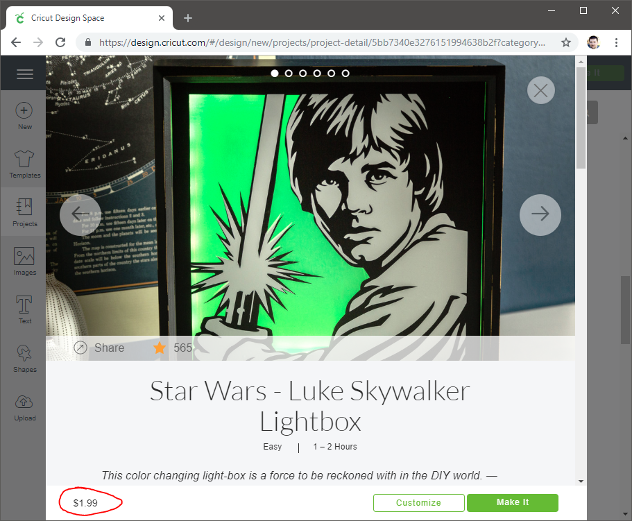 You can import this project into the Cricut Designer, customize it however you want, but you only pay when you actually go to make the project. This got me thinking.